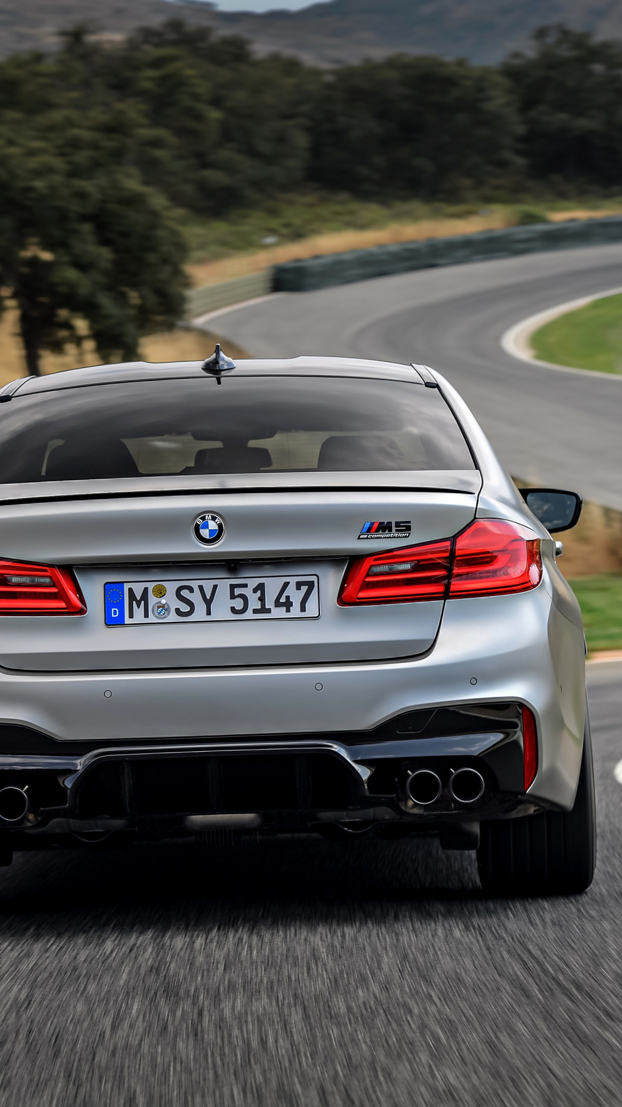 Назад к обои серый, трасса, BMW, седан, вид сзади, 4x4, 2018, четырёхдверный