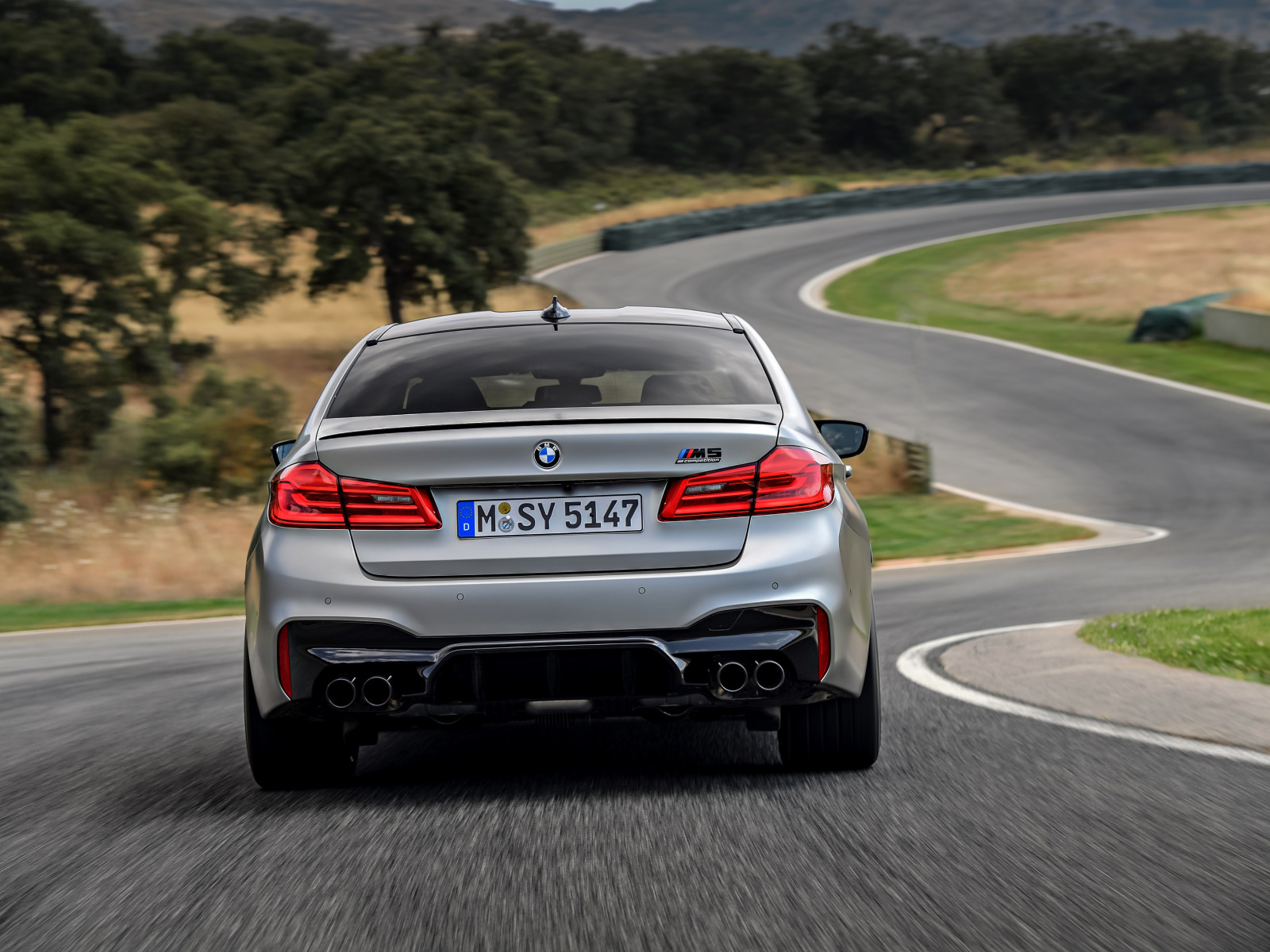 серый, трасса, BMW, седан, вид сзади, 4x4, 2018, четырёхдверный
