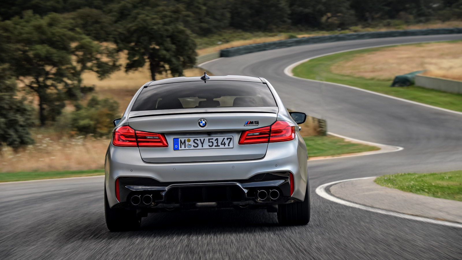 серый, трасса, BMW, седан, вид сзади, 4x4, 2018, четырёхдверный