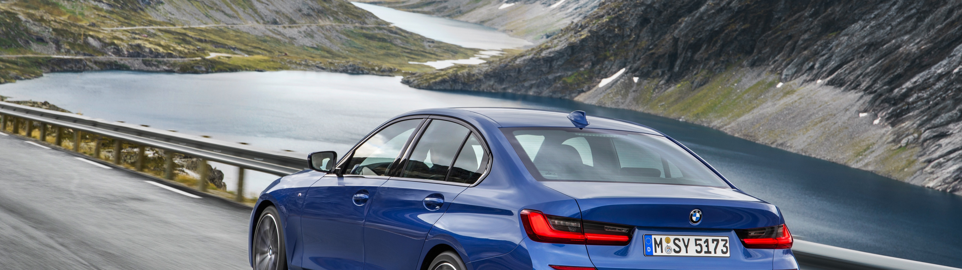 Назад к обои дорога, асфальт, вода, горы, разметка, BMW, M Sport, 3-Series