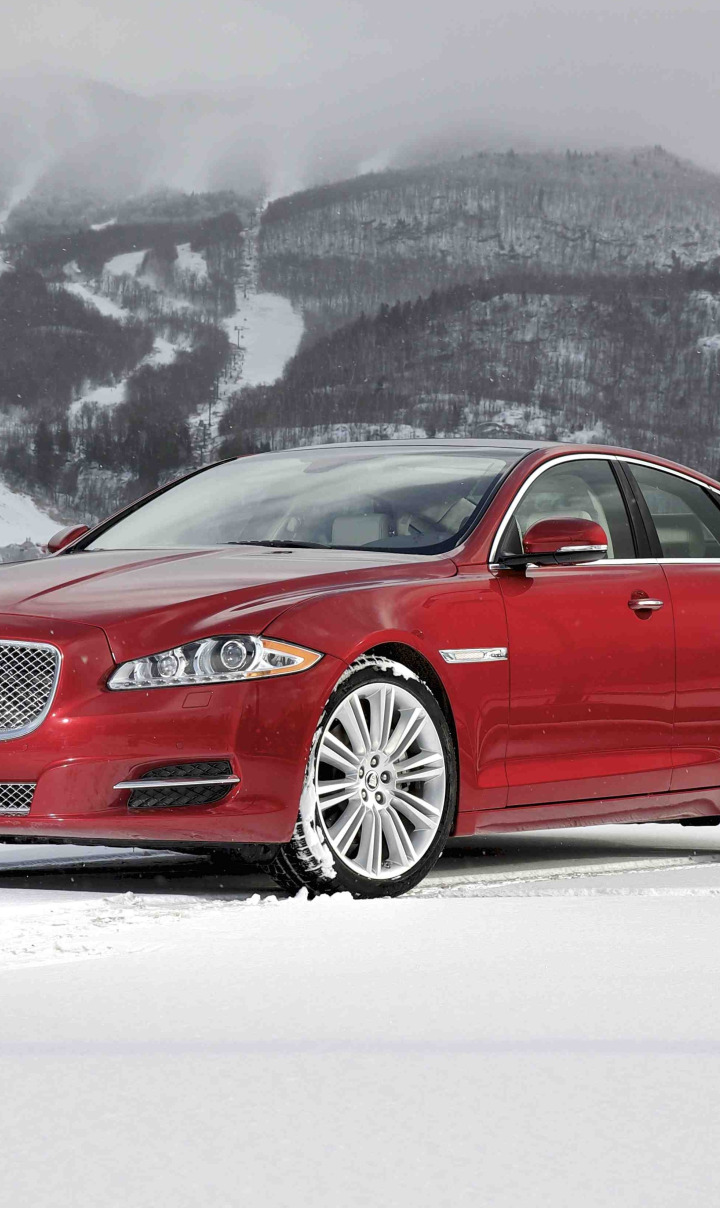 Назад к обои зима, снег, красный, Jaguar, автомобиль, передок