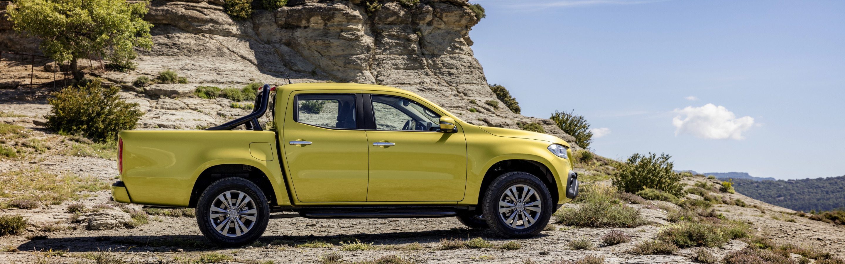 небо, облака, пейзаж, желтый, растительность, Mercedes-Benz, профиль, пикап