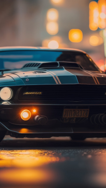 lights, road, muscle car, street, AI Art