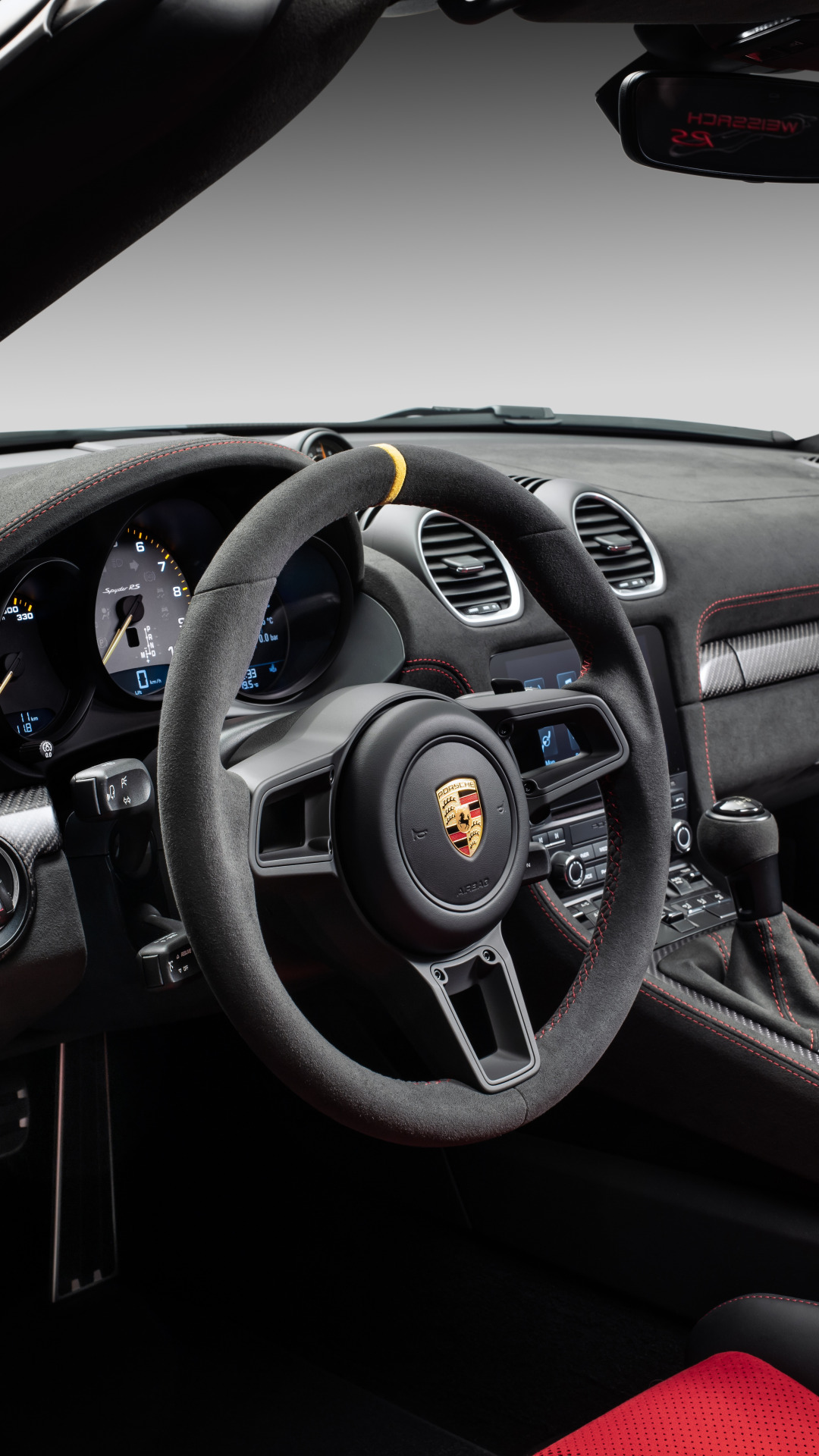 Назад к обои Porsche, Steering Wheel, 718, Car Interior, Porsche 718 Spyder RS